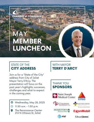 Please join us for the May Member Luncheon as Joliet Mayor Terry D'Arcy presents the State of the City Address.